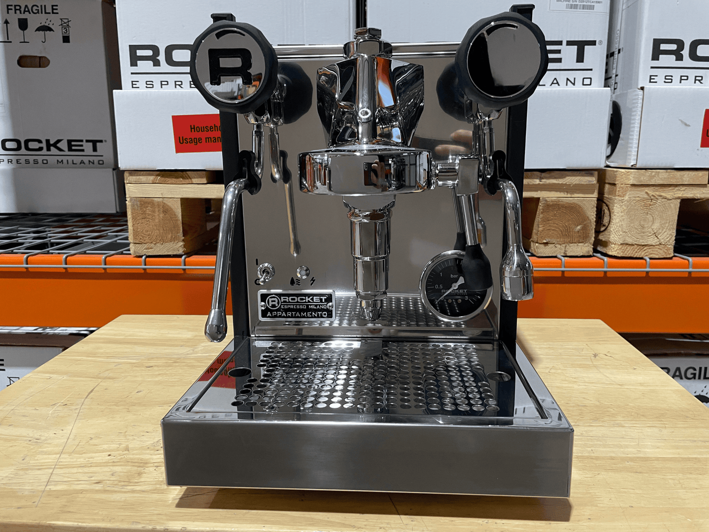 Introducing the Rocket Appartamento TCA! This modernized version of the classic espresso machine boasts Temperature Control Adjustment and a sleek design.