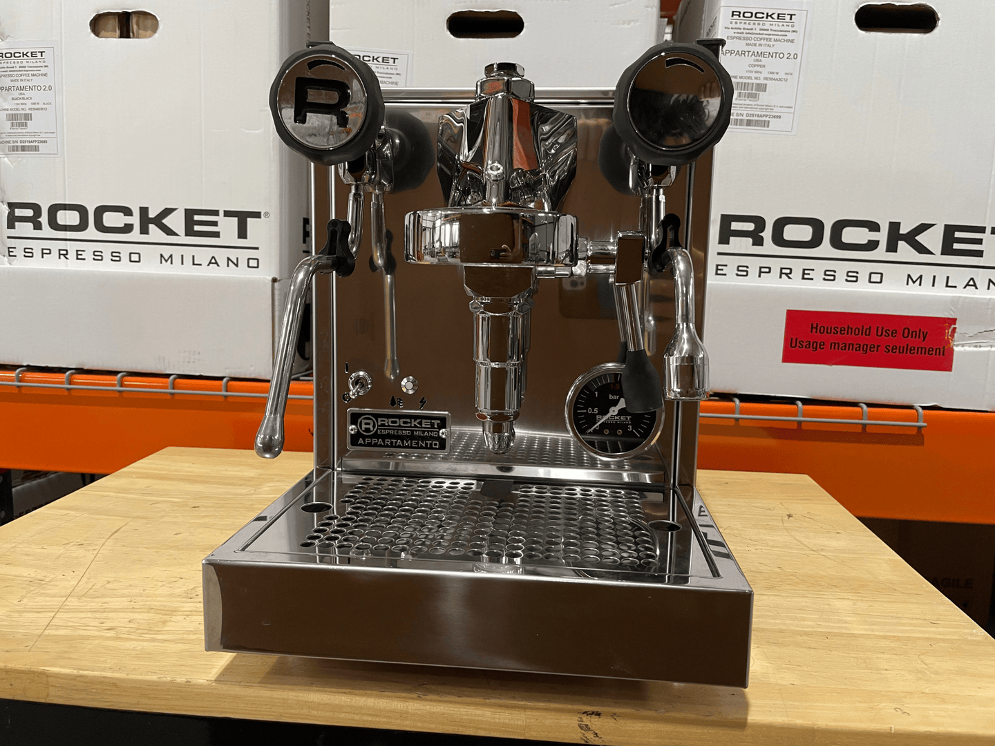 Usually ships within 2-3 business daysUpgrade your home bar with the Rocket Espresso Appartamento TCA for improved espresso quality and enhanced features like a 4-setting temperature control system, upgraded stainless steel frame, redesigned case, and integrated cup rail.