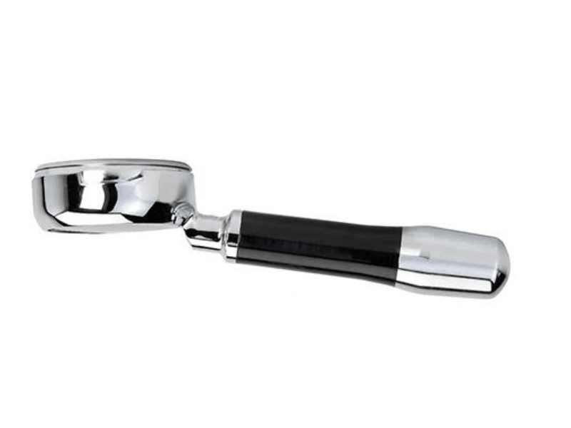 • Chrome-plated bottomless portafilter with black handle with ergonomically angled grip