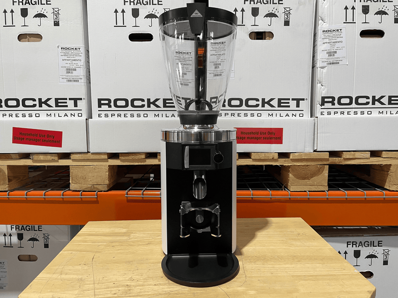 The Mahlkonig E65S espresso grinder is designed to deliver exceptional performance with advanced features for a perfect grind every time. It features a convenient push-turn button, an intuitive icon-based menu, and the ability to store up to 6 customizable grinding settings. This model combines top-tier grinding technology with user-friendly controls, making it ideal for anyone looking to elevate their espresso experience.