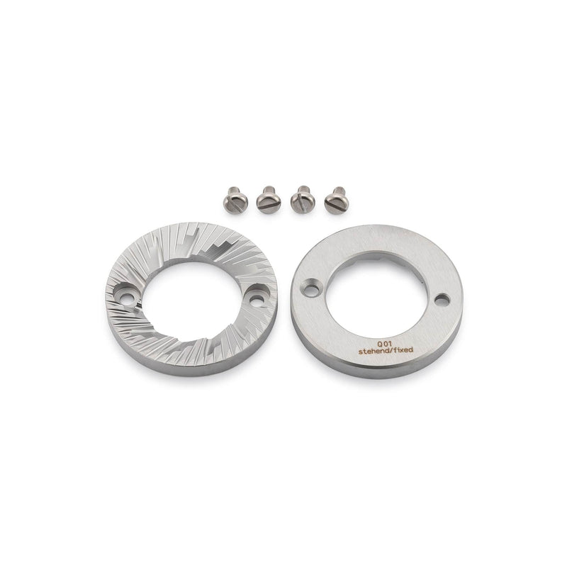 The crucial perfect match between the motor and the burr set is not ensured when replacing your burrs with imitation or non-Mahlkönig burrs. The burr replacement with unoriginal burrs impacts performance, lifetime, liability and safety as well as warranty.