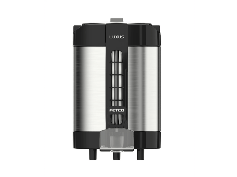 The Fetco LGS Thermal Sight Gauge Server is a premium, space-saving solution designed for environments where countertop space is limited, such as hotel lobbies, breakrooms, or office coffee services.