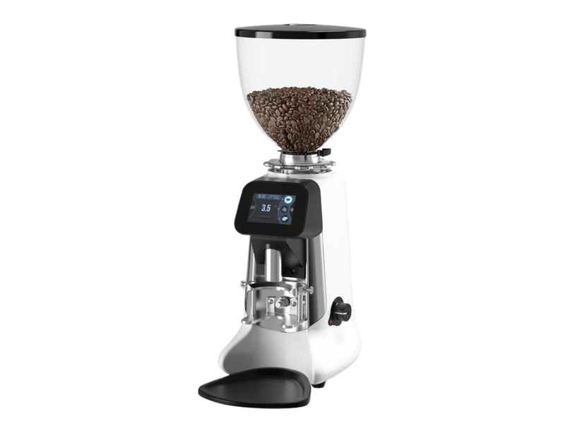 Upgrade your coffee experience with the HeyCafé Buddy On-Demand Grinder—a perfect blend of precision, efficiency, and ease of use. Its 3.5-inch touchscreen display offers intuitive control over two programmable recipes and manual grinding. Enjoy stepless grind size adjustment for perfect consistency, while the 64 mm German-made hardened steel burrs deliver exceptional taste and performance. Designed for hands-free grinding, it features universal portafilter support and a smooth, easy-to-clean body with minimal residue buildup. The cast aluminum build ensures durability and optimal heat management, while its low noise level keeps your workspace quiet.