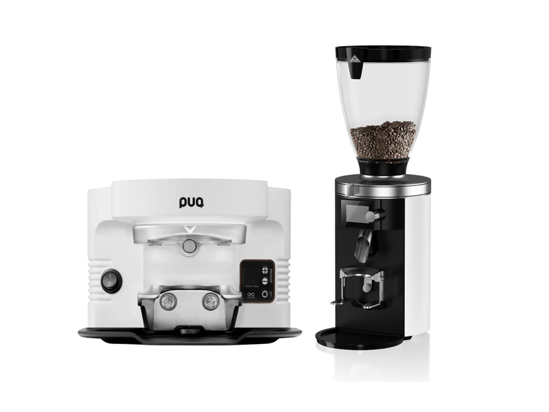 Upgrade your espresso workflow with this powerful pairing: the Mahlkönig E65T (formerly known as E65S) espresso grinder and the PUQ Gen 5 M3 automatic tamper.