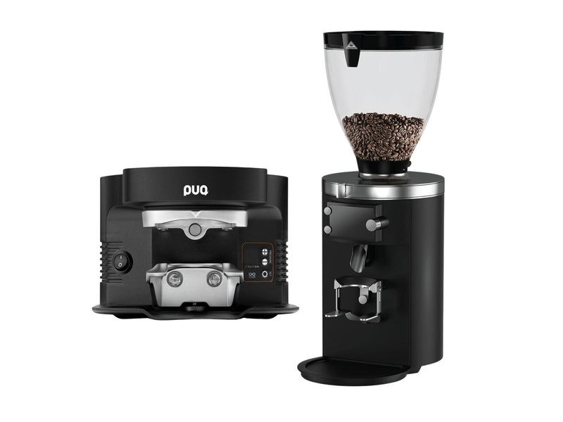The PUQ M5, designed for Mahlkönig E80 grinders, is ideal for cafes with limited space. This automatic tamper combines grind-on-demand convenience with precision tamping, ensuring perfectly compressed coffee grounds and a level tamp every time.