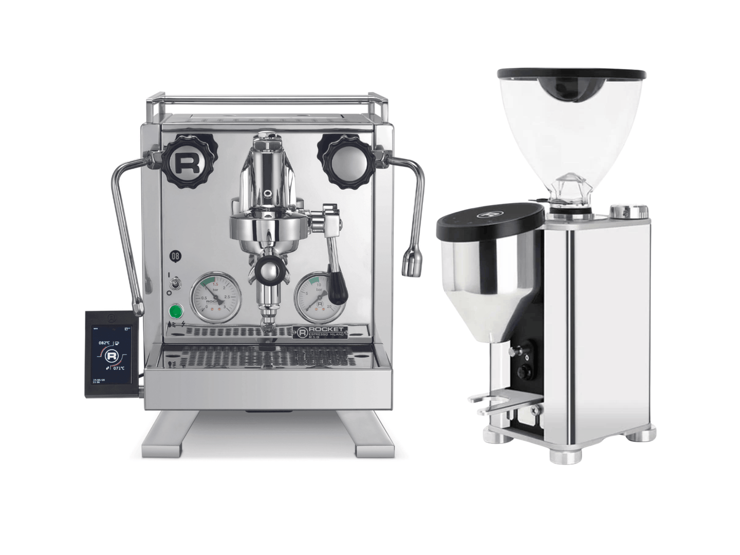 Experience true Italian espresso craftsmanship with the Rocket R58 Cinquantotto + Grinder Bundle, a premium pairing built for enthusiasts who value performance, precision, and design.