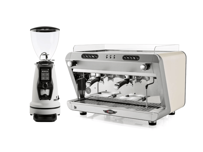 Elevate your coffee service with the Wega IO EVD + Macap MI40 Luxe Bundle, crafted for style, efficiency, and precision. The Wega IO EVD, designed for smaller commercial environments, brings authentic Italian espresso craftsmanship to cafés, restaurants, and pubs. With its two group heads, compact design, and sleek modern finish, it delivers consistent performance and professional reliability while saving valuable counter space.